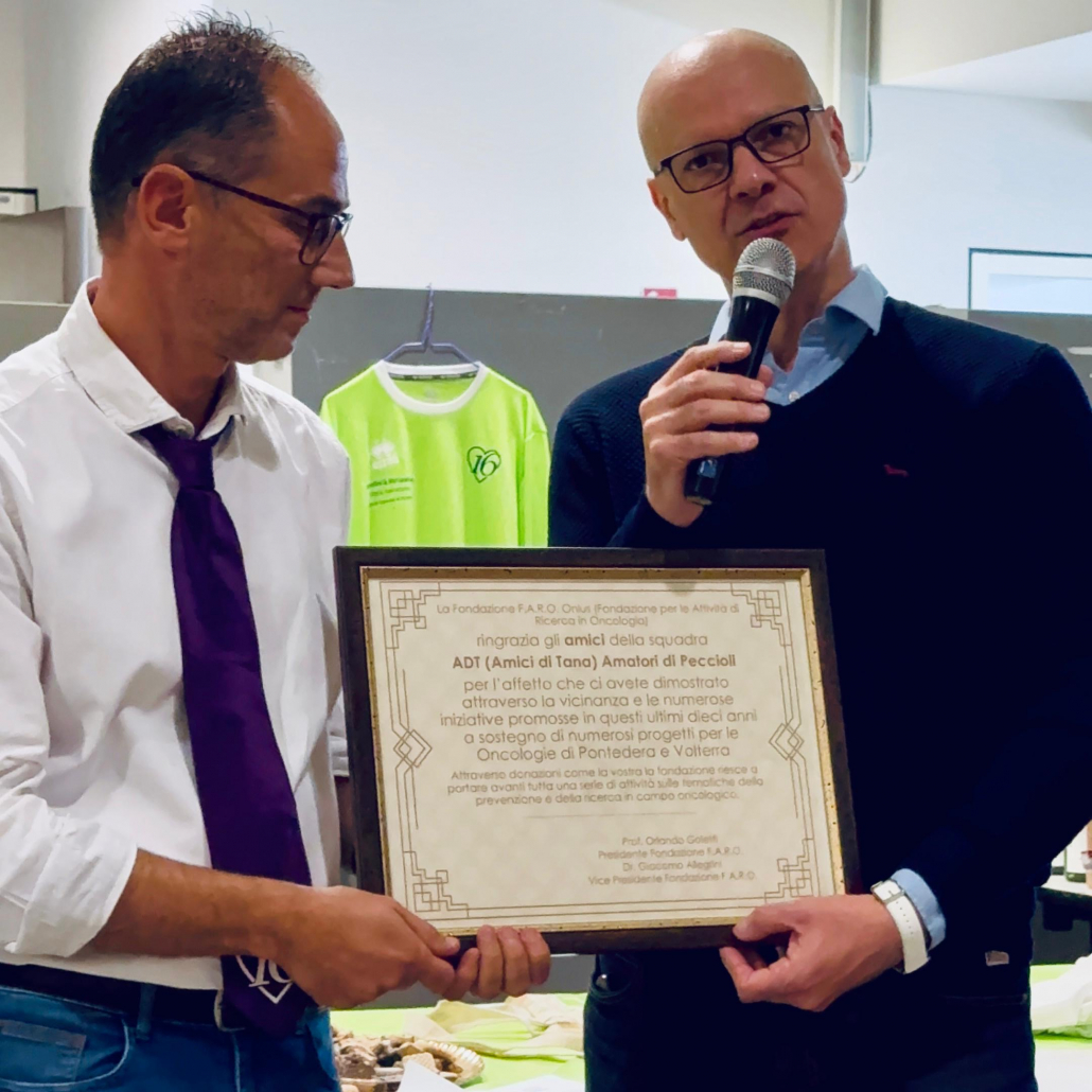 “Ringrazio davvero di cuore i ragazzi del gruppo ADT Amatori Peccioli e il suo presidente Flavio Santarnecchi – evidenzia il dottor Allegrini – che da anni ormai ci supportano, con cene di beneficenza e tanta generosità. E’ toccante vedere come questi ragazzi, a distanza di tanti anni tengano vivo il ricordo di un compagno, come se fosse ancora qui. Non ci resta quindi che ringraziare, anche se ci sembra sempre troppo poco. Visto che quest’anno il Memorial è stato spostato a settembre, siamo davvero felici di poter condividere con la società calcistica ADT Amatori Peccioli e con tutta la comunità l’arrivo, proprio in questi giorni, del primo macchinario. Non ce l’avremmo fatta senza di voi: Peccioli ci crede sempre e anche noi con voi. Semplicemente GRAZIE”.